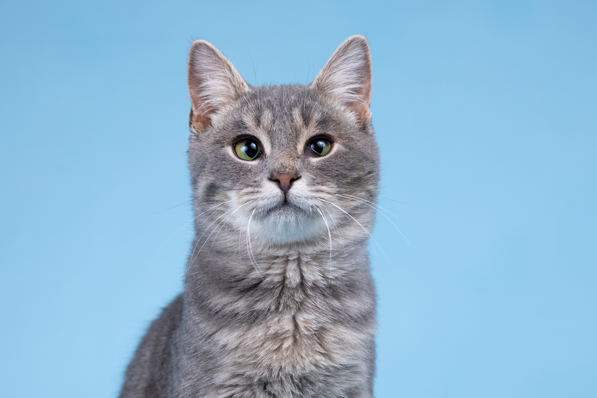 Честер — очень забавный молодой котик. Своим взглядом мальчишка немного напоминает инопланетянина. Серая шелковистая шёрстка и мягкий ласковый характер, в этом весь Честер.