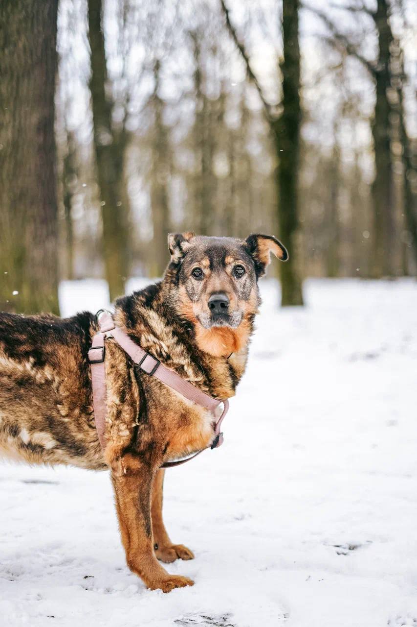 До приюта эта тихая красотка жила с другими собаками на промзоне, где добрые кормилицы приносили им еду. Потом она попала в приют. Моняше пришлось привыкать ещё и к коричневым «сухарикам» в ведре… ибо ни о какой домашней еде в приюте и речи быть не может.