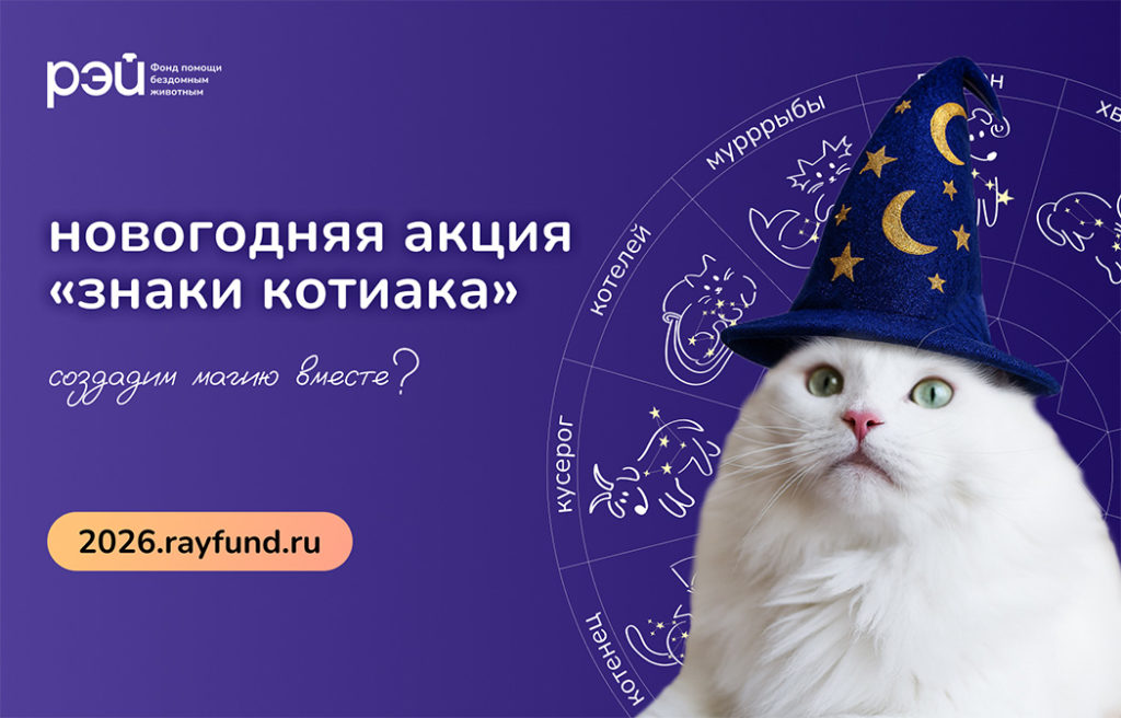 А вы знали, что в канун Нового года желания загадывают не только люди? Кошки и собаки из приютов тоже верят в чудо! С 1 декабря по 18 января вы можете познакомиться с подопечными нашего фонда и исполнить их новогодние желания на сайте акции «знаки котиака». Стать волшебником очень просто! Нужно лишь выбрать созвездие или конкретного […]